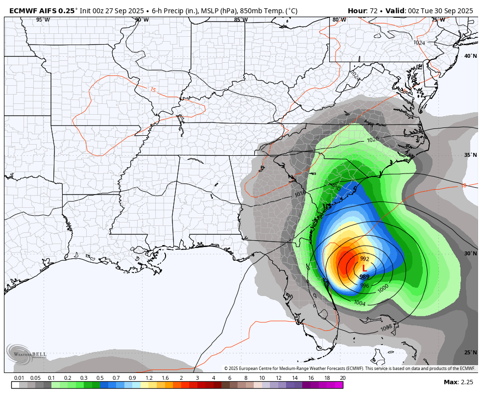 The EURO AI had been a stall and out to sea, but the latest run is now a South Carolina hit with rain coming all the way back into our region…