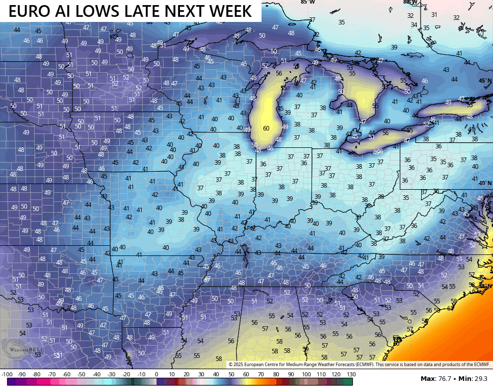 The models are indicating the chance for patchy frost later next week or into next weekend…