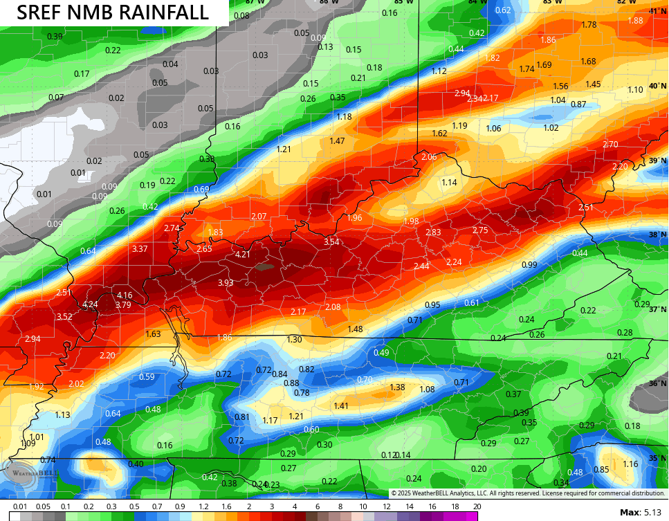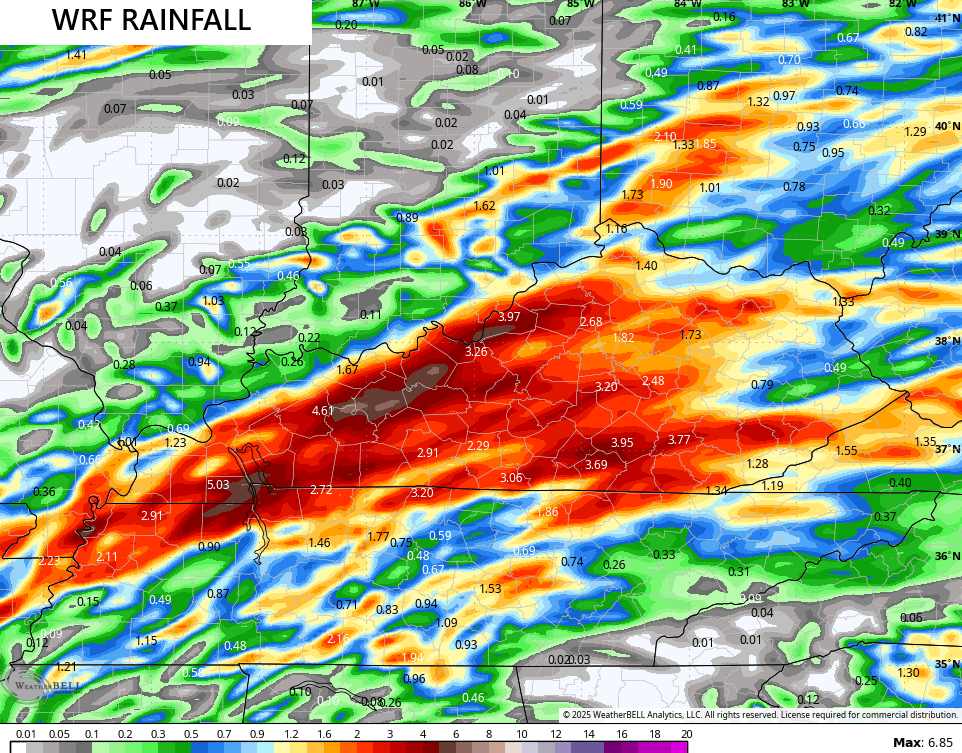 The WRF is going with even higher amounts with pockets of 5″+ rains…