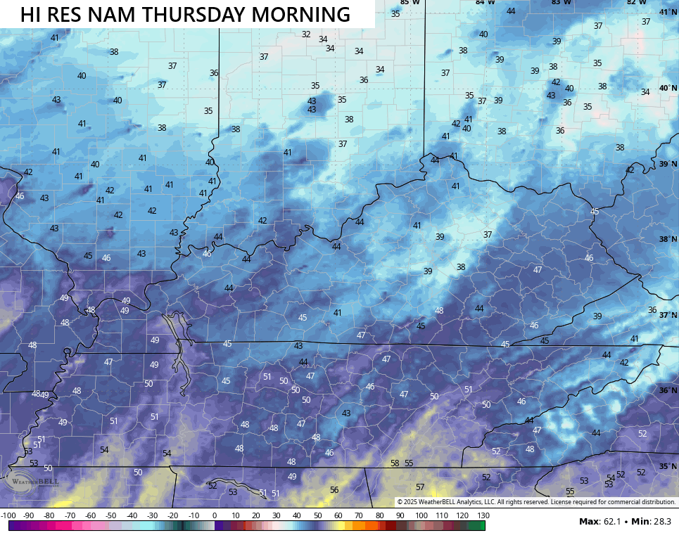 Cooler winds blow in behind all this tonight and Wednesday with awesome air for the rest of the week and weekend. Highs generally run from the mid 60s to low 70s. Lows by Thursday morning will generally be 40-45 but some models are trying to take a dip into the upper 30s…