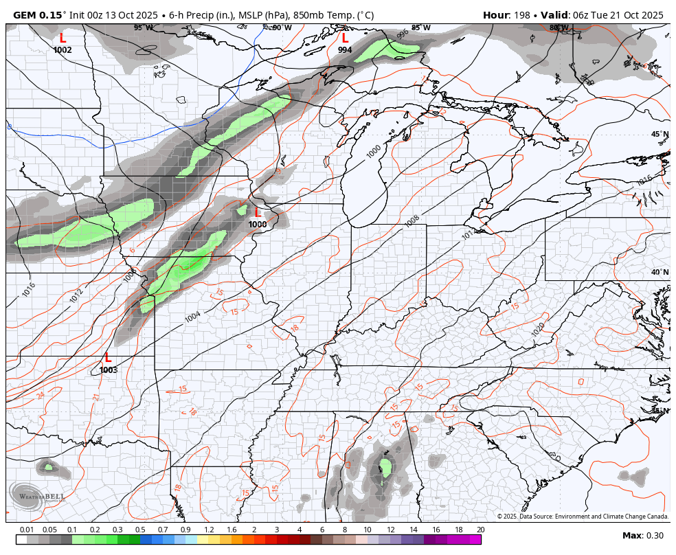 These systems are rolling across the country like bowling balls, courtesy of a very busy upper-level pattern. This animation starts this Saturday and goes through October 27…