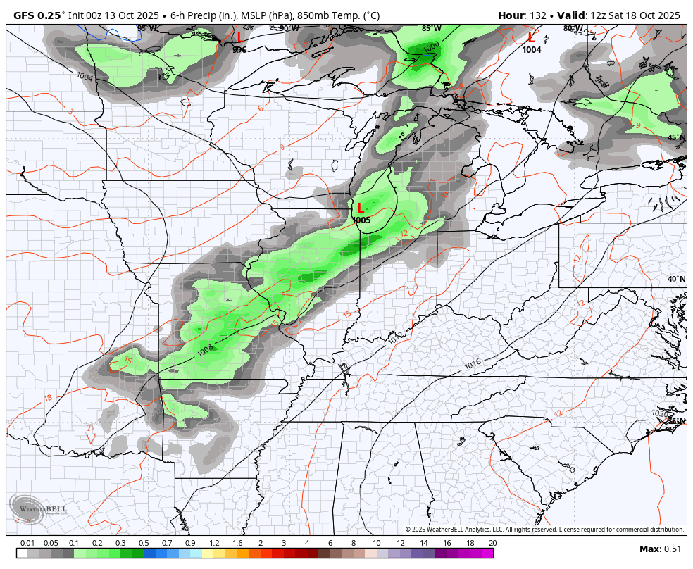 The fall colors in Pennsylvania and Maryland are amazing too (work trip views). Looks like this forecast gives me a chance to do some serious yard work before the rains return.