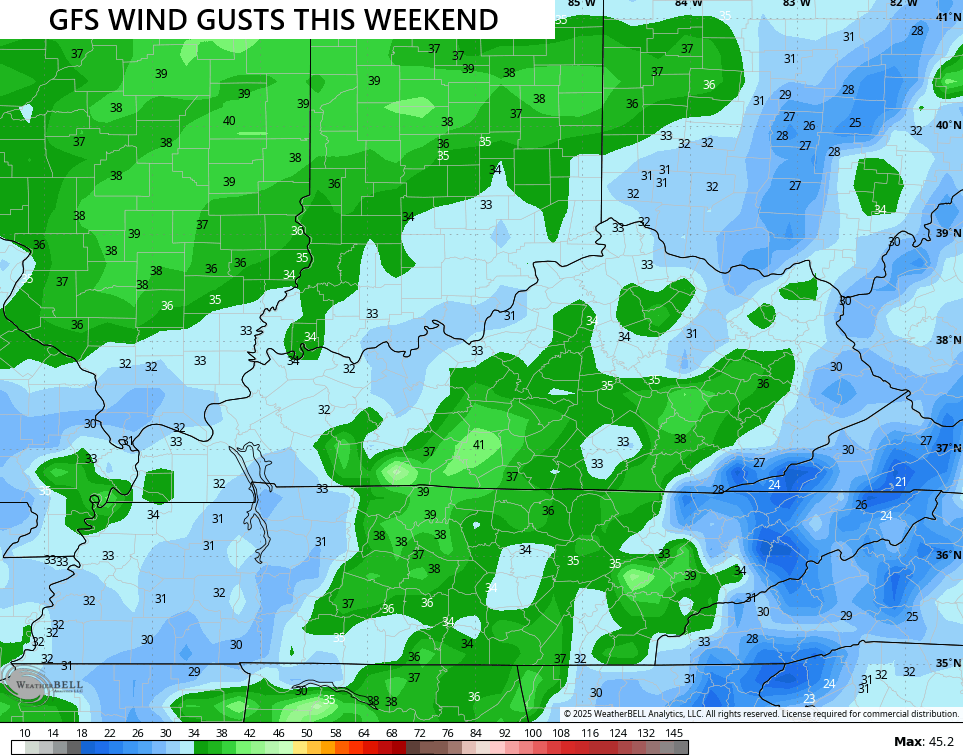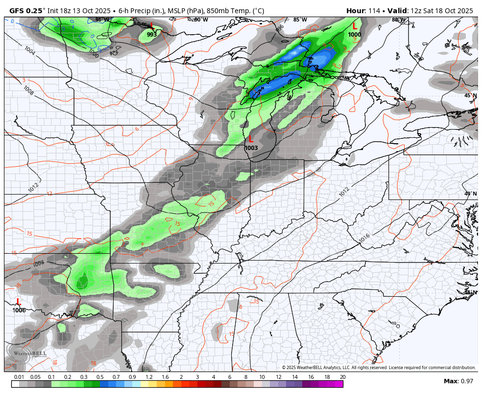 That low will spawn all kinds of showers and thunderstorms along and ahead of the low from late Saturday through the first half of Sunday…