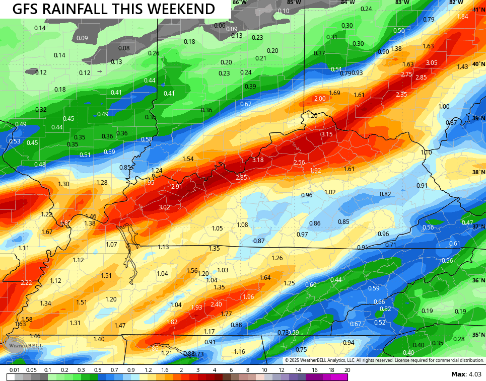 That run of the GFS is spiting out a swatch of healthy rain amounts…