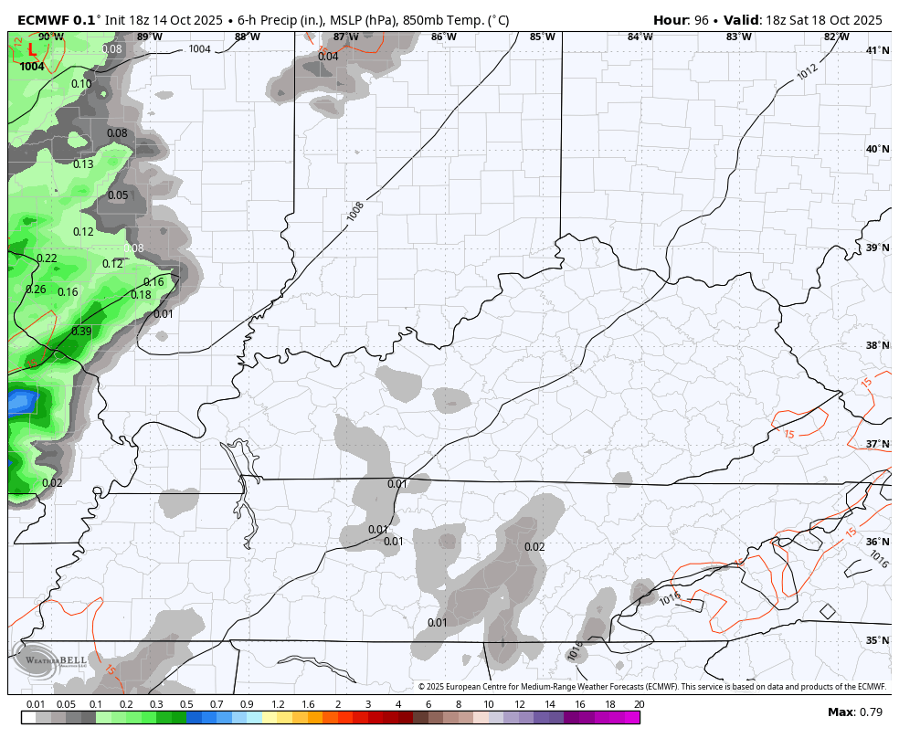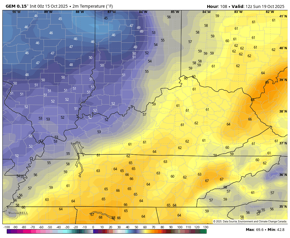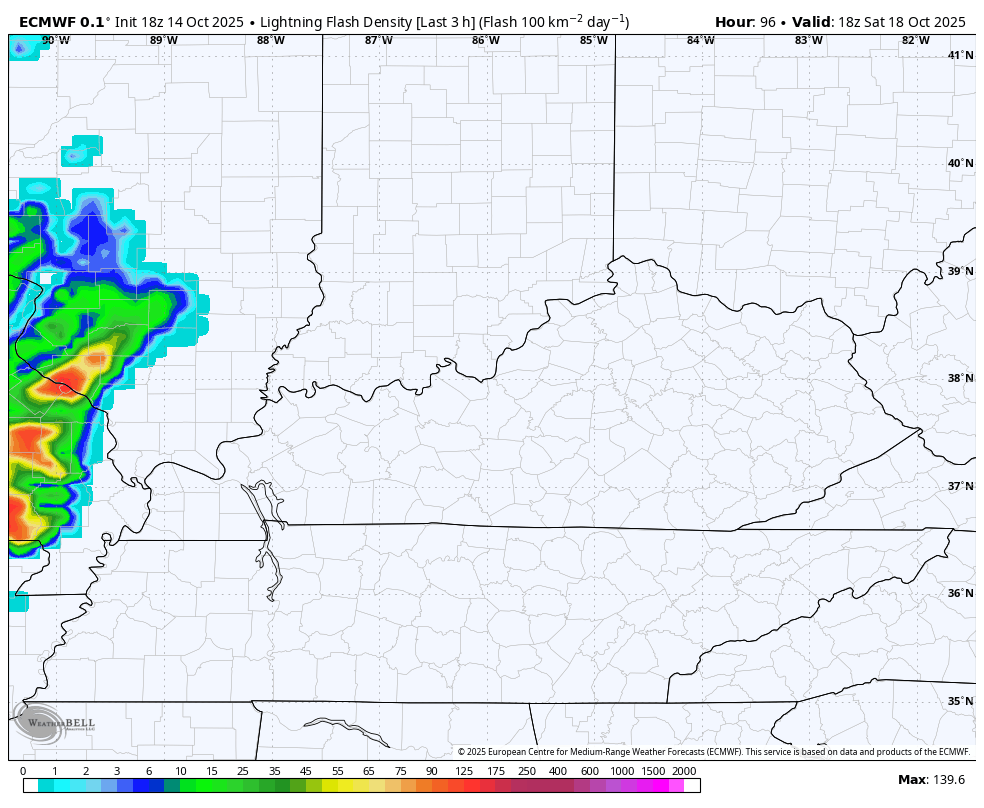 The weak front out there today knocks the numbers down behind it for central and eastern Kentucky Thursday and part of Friday. After that, it’s all about the weekend system.