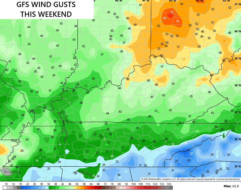 - Low pressure pops along this boundary by early Sunday and that brings widespread gusty showers for central and eastern Kentucky