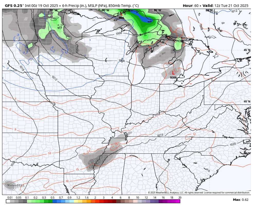 The next system sweeps in quickly on Tuesday with a gusty band of showers ahead of another fall cold front. This front gives us the chance for frost Wednesday morning and/or Thursday morning depending on clouds.