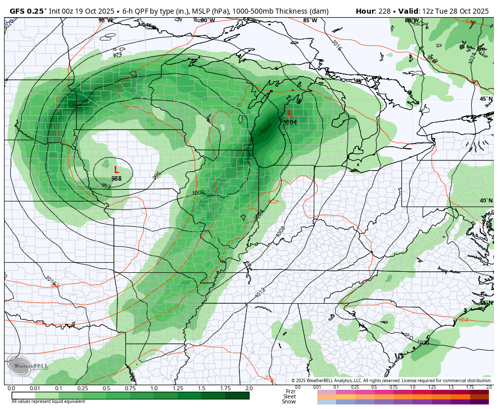 Good Sunday to one and all. Our powerhouse of a fall storm system continues to push through the region today, bringing gusty winds, showers and storms with a temp crash coming along for the ride. This kicks off what looks like a really active setup for the rest of the month and into November.