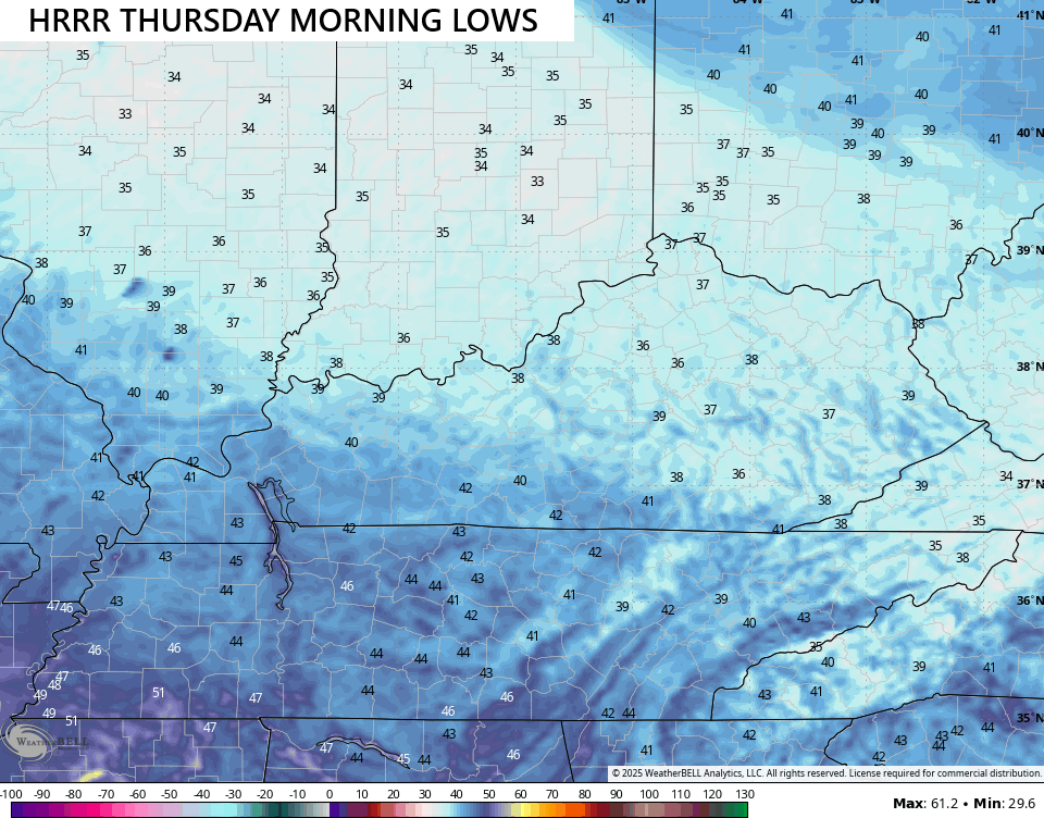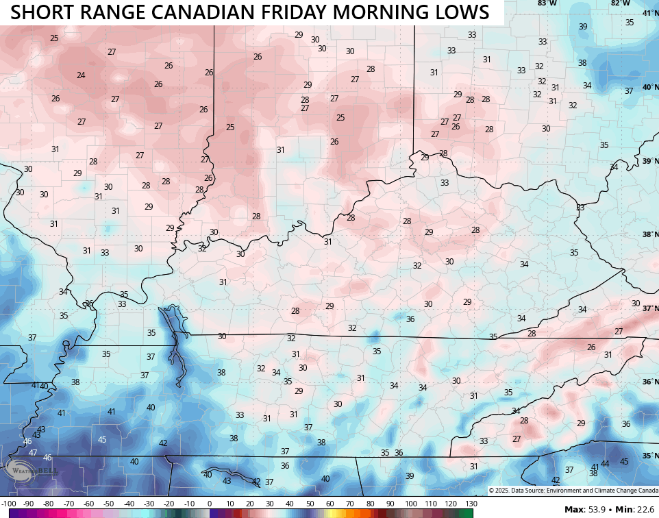 - Friday morning looks to bring us widespread frost and a light freeze.