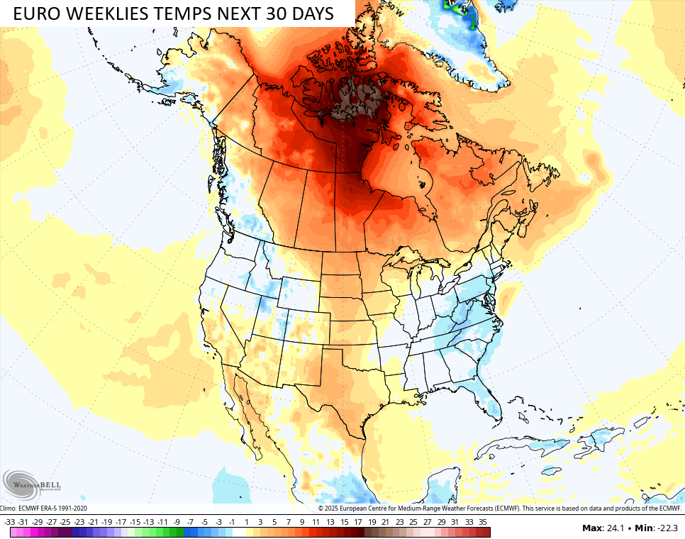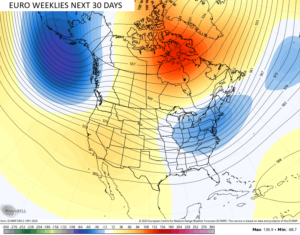 Looking at the EURO Weeklies for the next month, they continue to grow more emphatic with a trough in the eastern half of the country…