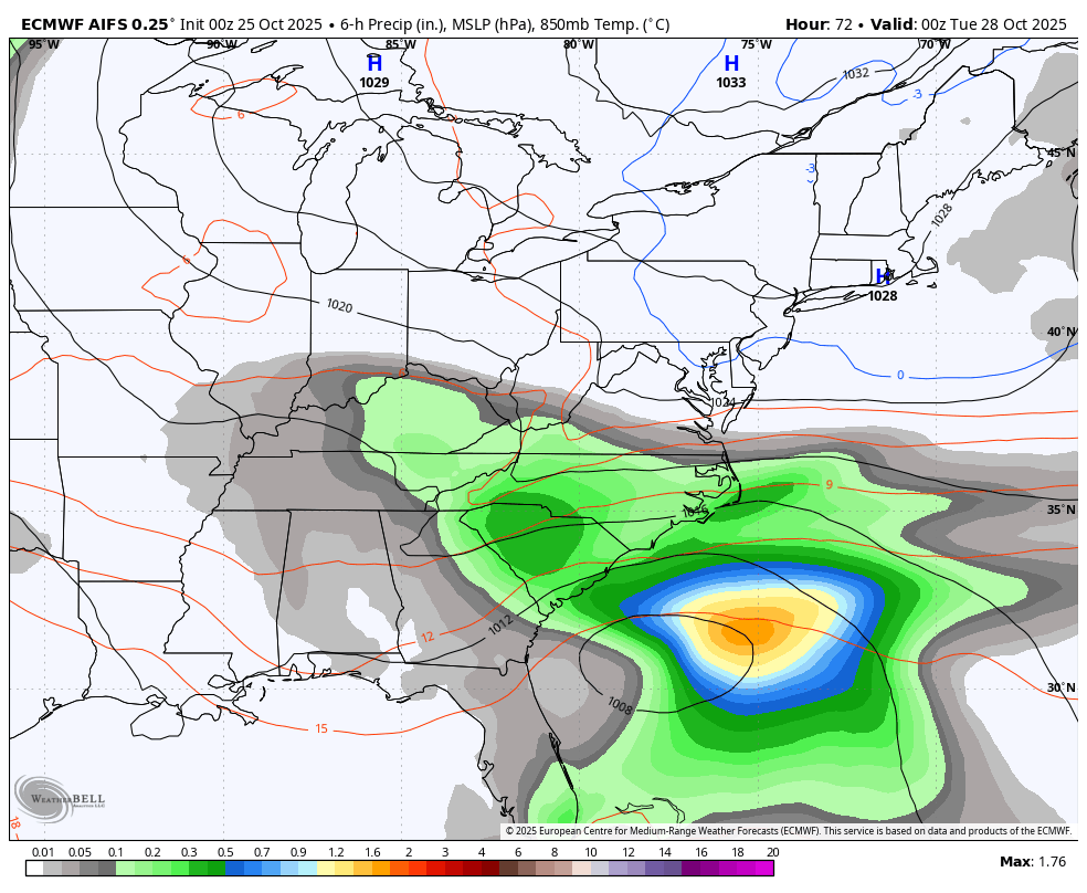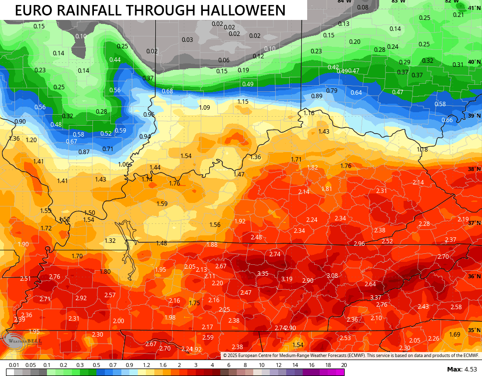 These models have been pretty consistent in spitting out another 1″-3″ of rain before Halloween…