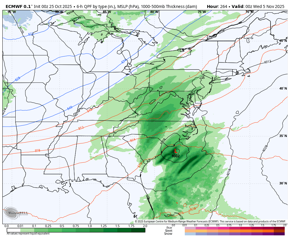 Looking into the first week of November, the EURO continues with a bit of a winter looking trough in the east…