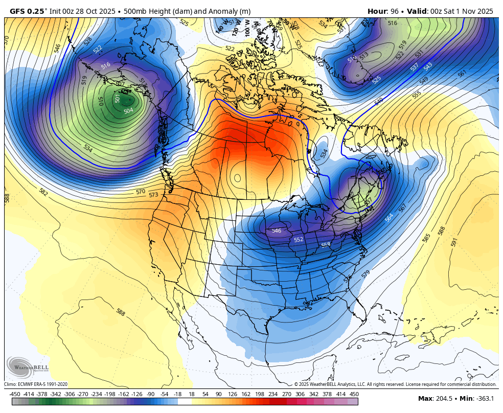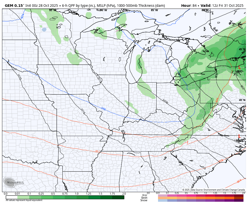 The Canadian gives us the best flow for a Halloween shower or two, especially in the north and east…