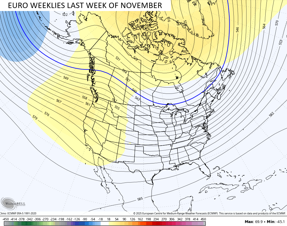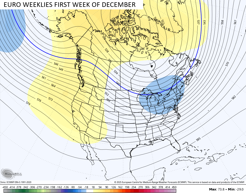 Not to beat a dead horse, but the EURO Weeklies aren’t letting up with the potential for a very fast start to winter as they continue to show a deep trough getting established in the eastern half of the country.
