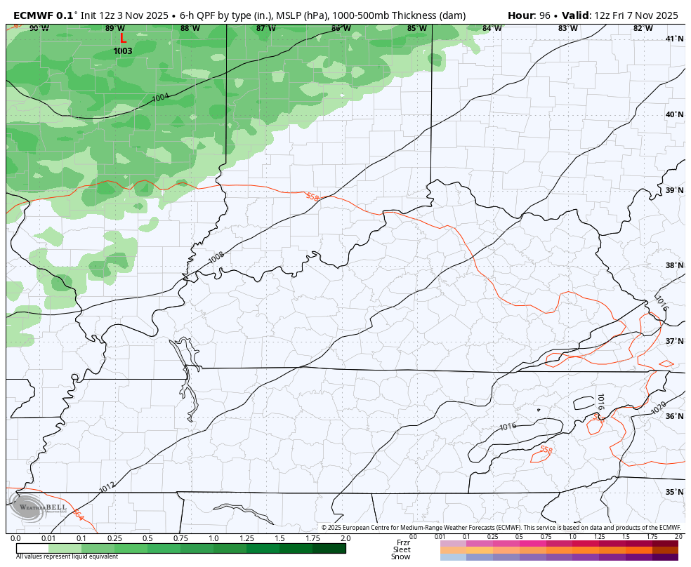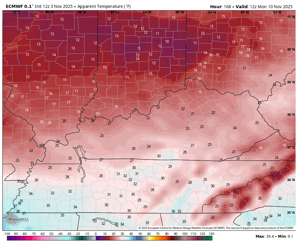 The EURO Ensembles show much of central and eastern Kentucky with the chance of seeing the first flakes…