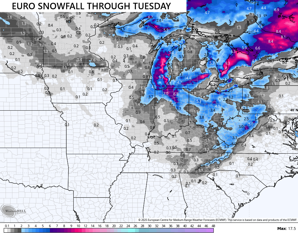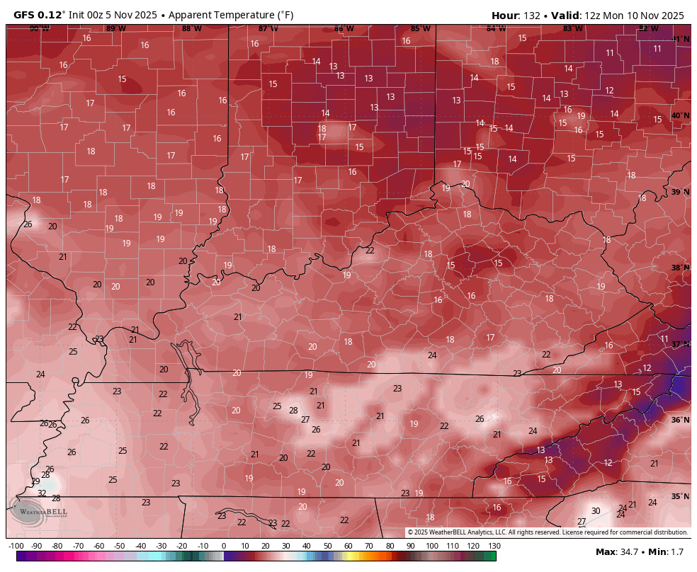 That run of the GFS only gives central and eastern Kentucky a few flakes…