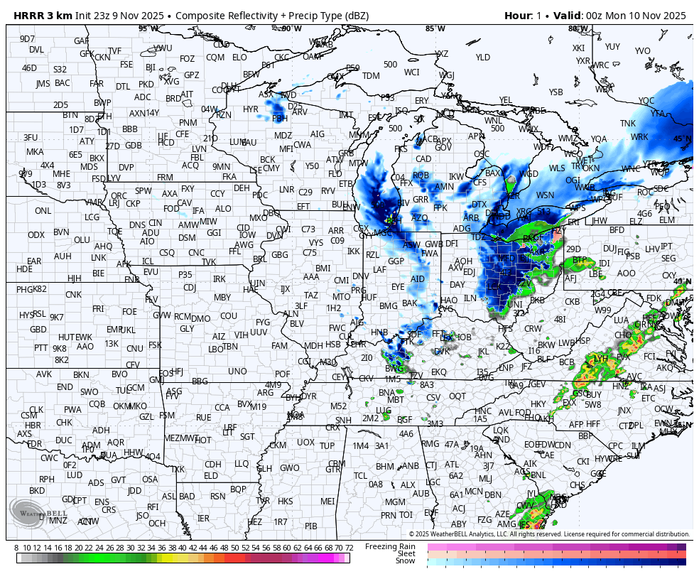 You can track that feature with the future radar from the Hi Res NAM that goes through 1pm Monday…