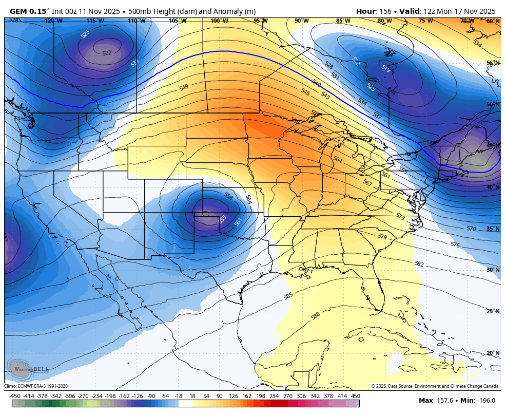 Watch how they are showing some pretty big dips and potential storm systems. Here’s the Canadian next week…