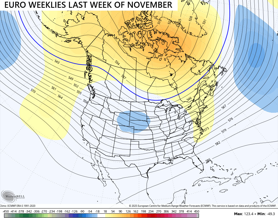 The latest from the Euro Weeklies continues to show this pattern kicking in to end November…