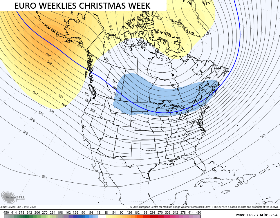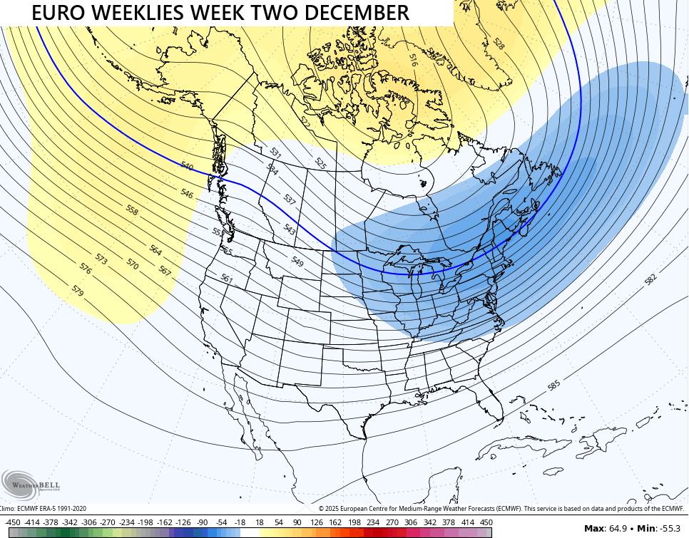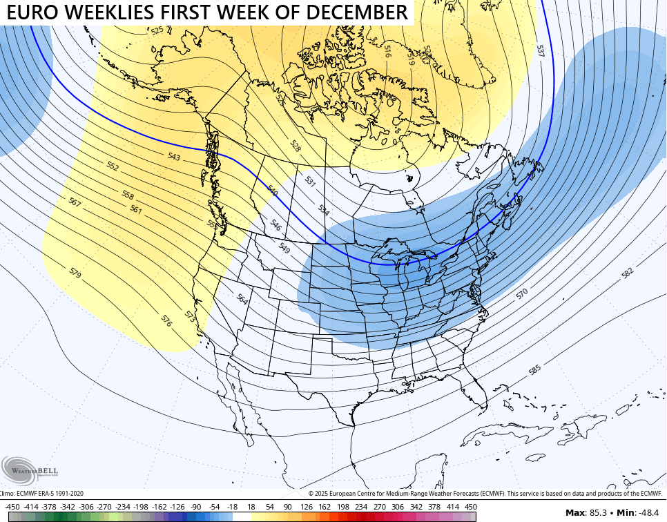 The Euro Weeklies now go through Christmas Day and they continue to like the deep trough idea…