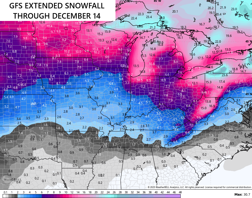 The GFS Extended doesn’t go out as far as the Euro Weeklies, but it’s also showing plenty of snow chances…