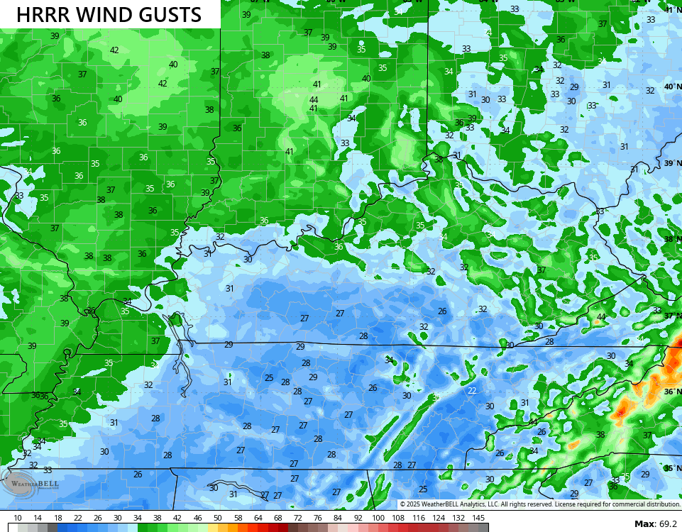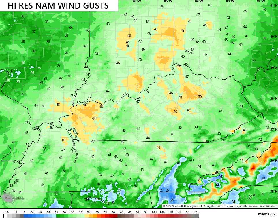 The winds flip around to the west and southwest later today and into Wednesday. This wind will peak close to 40mph at times in some areas. Once again, we find the Hi Res NAM going above and beyond…