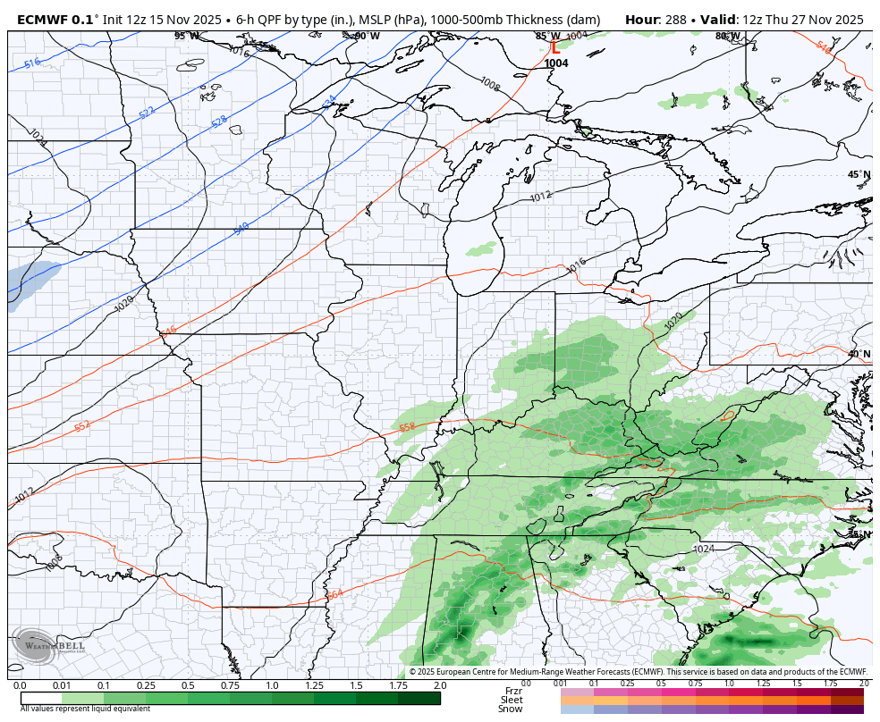 That may be a little too fast while the other models may be a tad too slow. It’s fun to watch the EURO go right back into bringing winter in here Thanksgiving Weekend…
