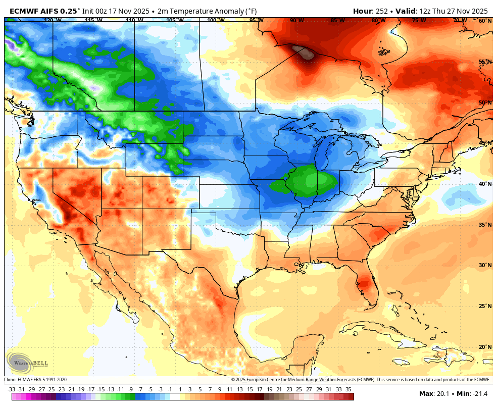Check out the cold shots the model is seeing starting behind that initial system around Thanksgiving…