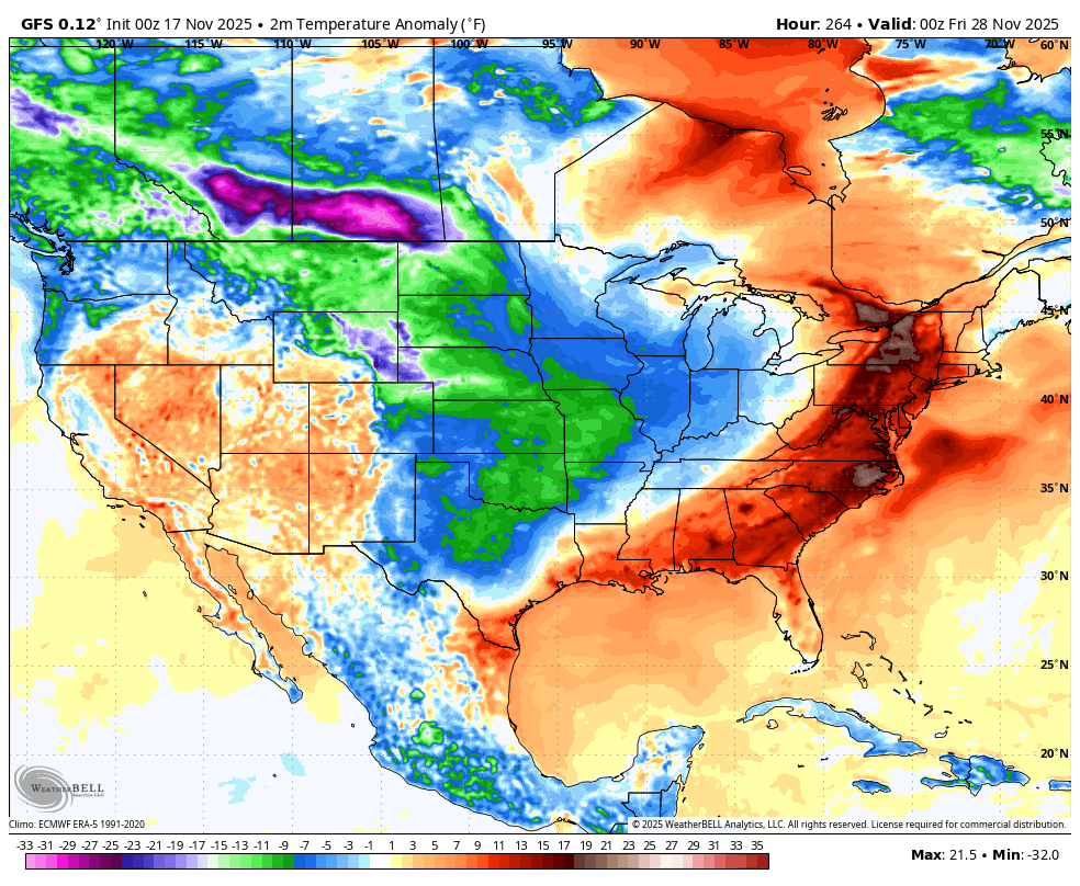 The GFS is beginning to see the transition now with this animation that starts on the Planes, Trains and Automobiles Day and goes through the first day days of December…