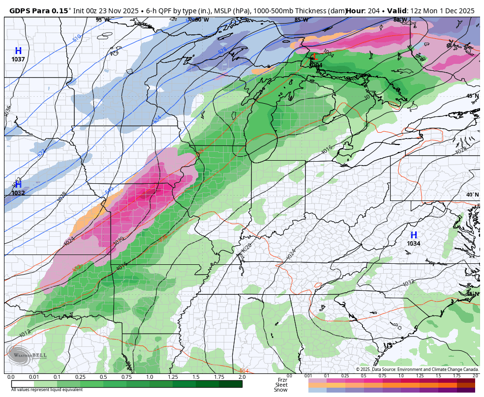 Thanks Chris. On that precipition model ( GDPS Para ) displaying the types, there’s more Ice ( freezing rain and sleet ) and mostly Snow well North of Kentucky. Warm high pressure aloft sitting on below freezing temperatures at the surface. No thanks for that weather setup, but it could happen in La Nina Winters.