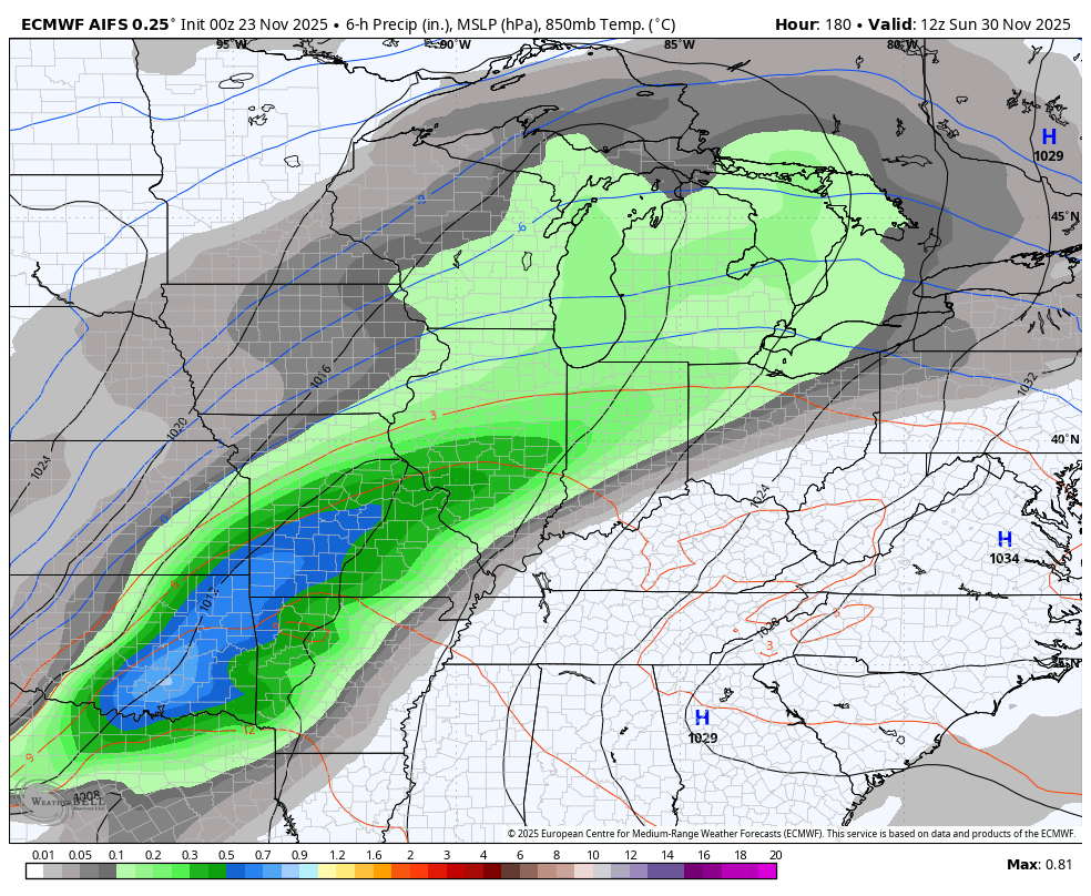 I continue to like what the Canadian is doing with this whole setup, and it continues to be the model that likes the flake chances early Thanksgiving morning. This animation goes from Monday evening through Black Friday morning…