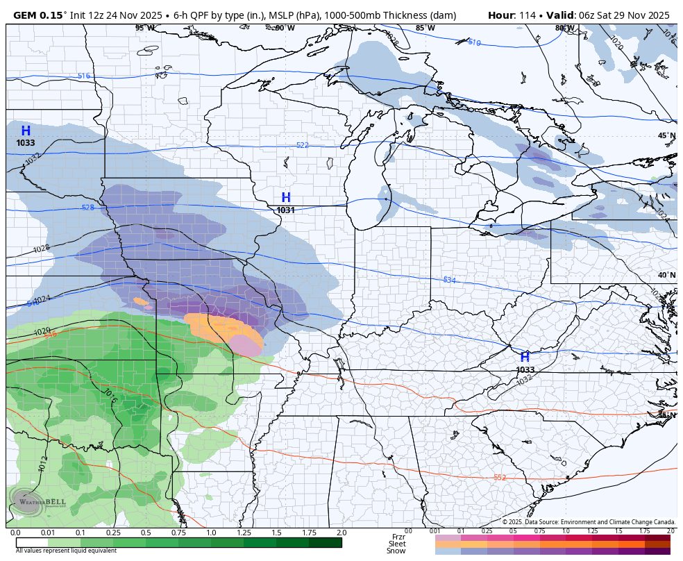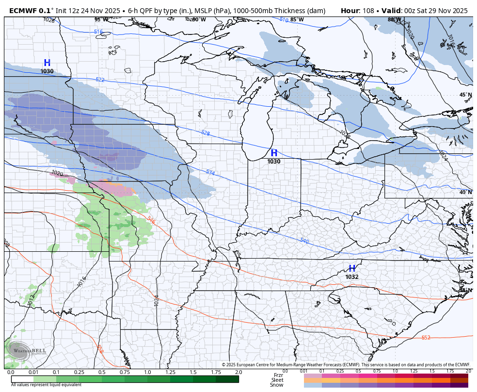 Friday is even colder with dry weather for holiday shoppers. Another system then moves in quickly on Saturday, bringing the chance for snow and rain. We warned you the models would trend back toward colder and they are doing just that.