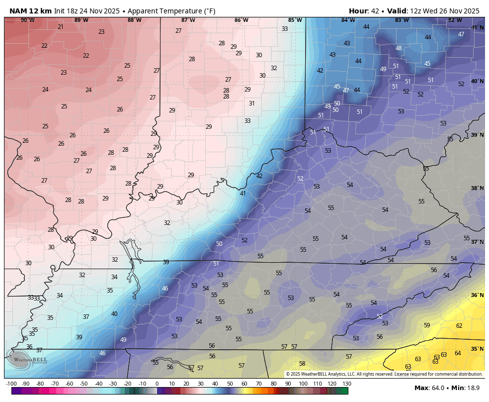 Temps drop all day long from west to east Wednesday with a blast of arctic air surging in. Wind chills drop into the 20s Wednesday afternoon and evening with teens by Thanksgiving Morning. This animation starts at 7am Wednesday and ends at 7am Thanksgiving…
