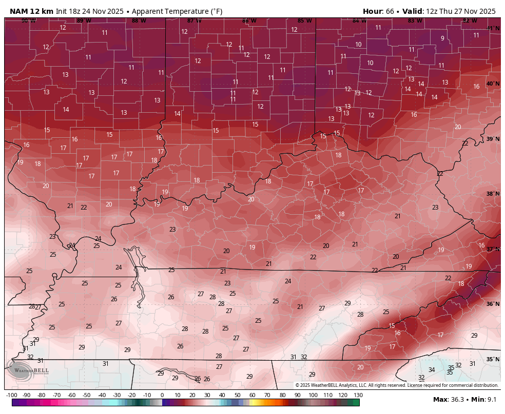Wind chills on Thanksgiving Day are Frigid on this animation starting at 7am and going through the evening…