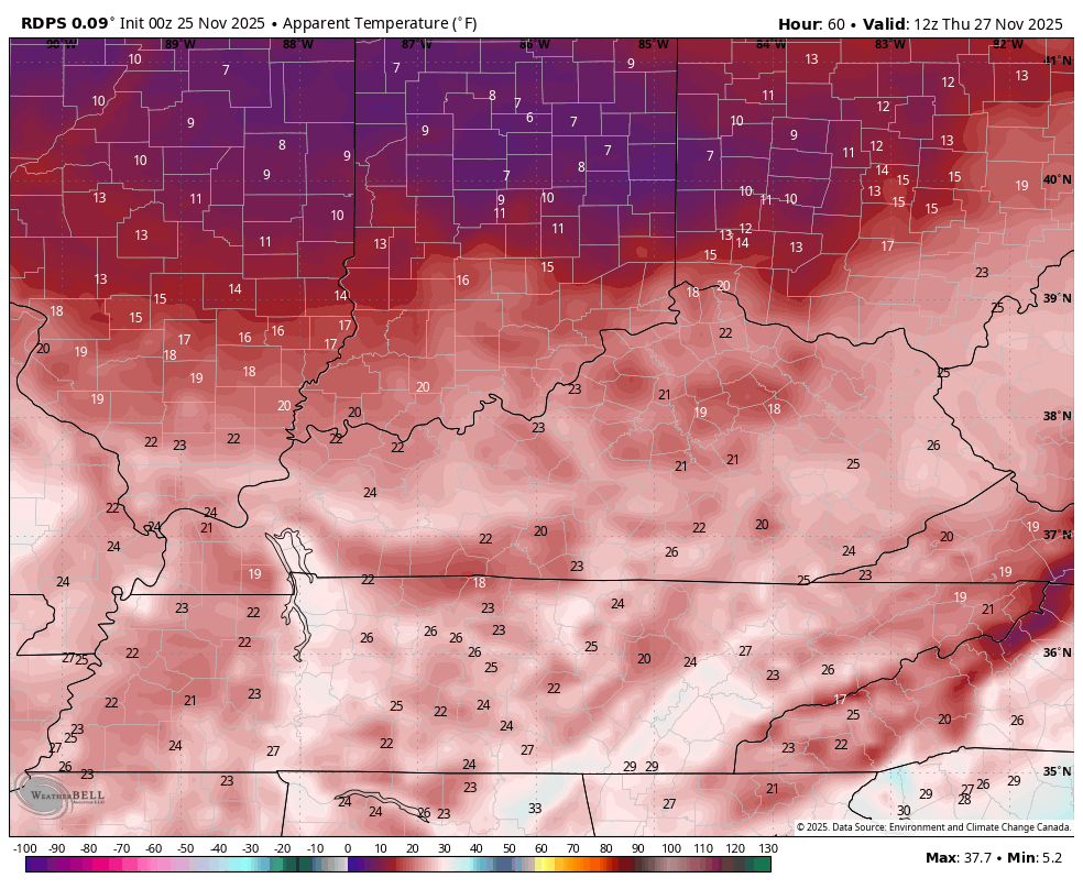 Temps range from the mod 30s to low 40s for highs on Thanksgiving with mainly low and middle 30s for Black Friday. Wind chills are even colder during this time. This animation goes from Thanksgiving morning into Friday morning…