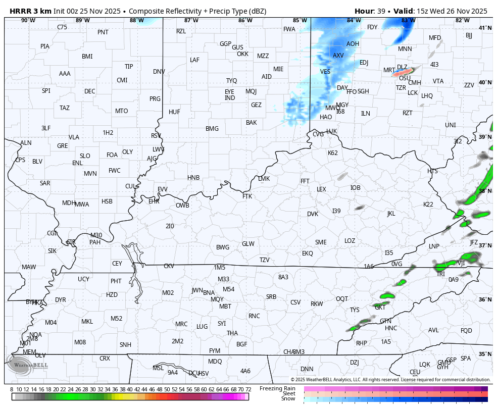 A strong cold front then slams through here late tonight into Wednesday morning. This will have some showers along and ahead of it with enough moisture behind it to spit out a few flakes Wednesday afternoon and evening. These flakes show up on the HRRR Future Radar from Wednesday afternoon and evening…