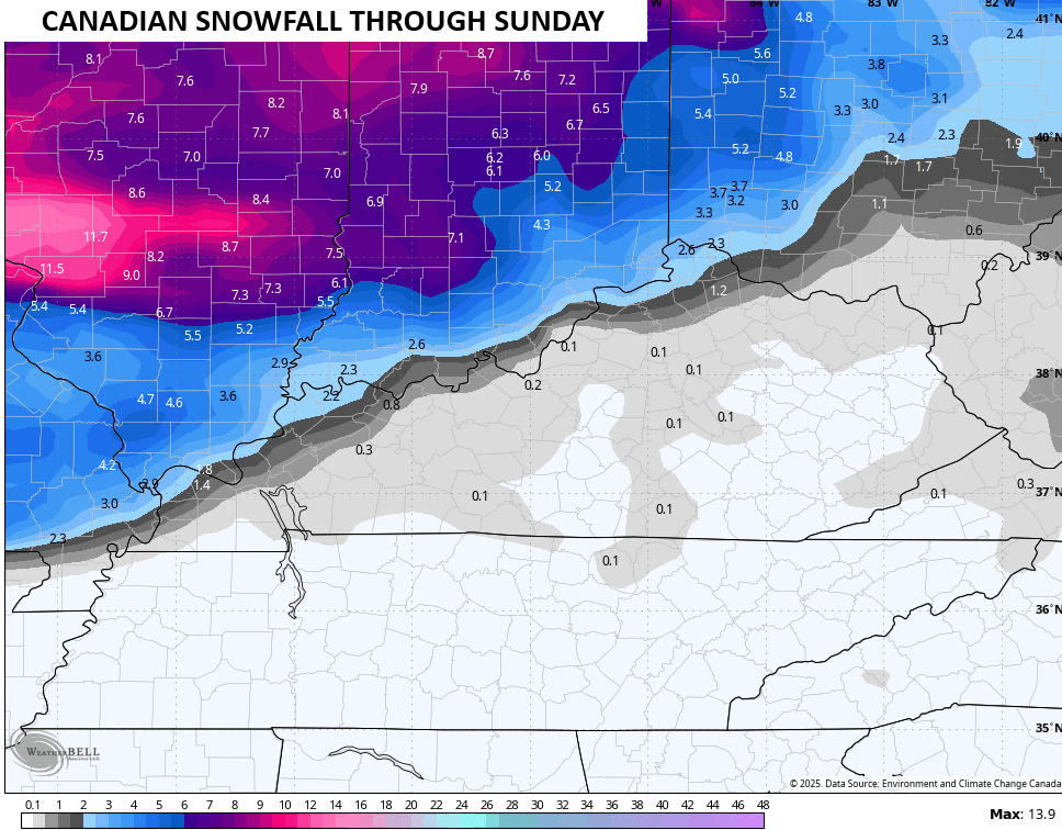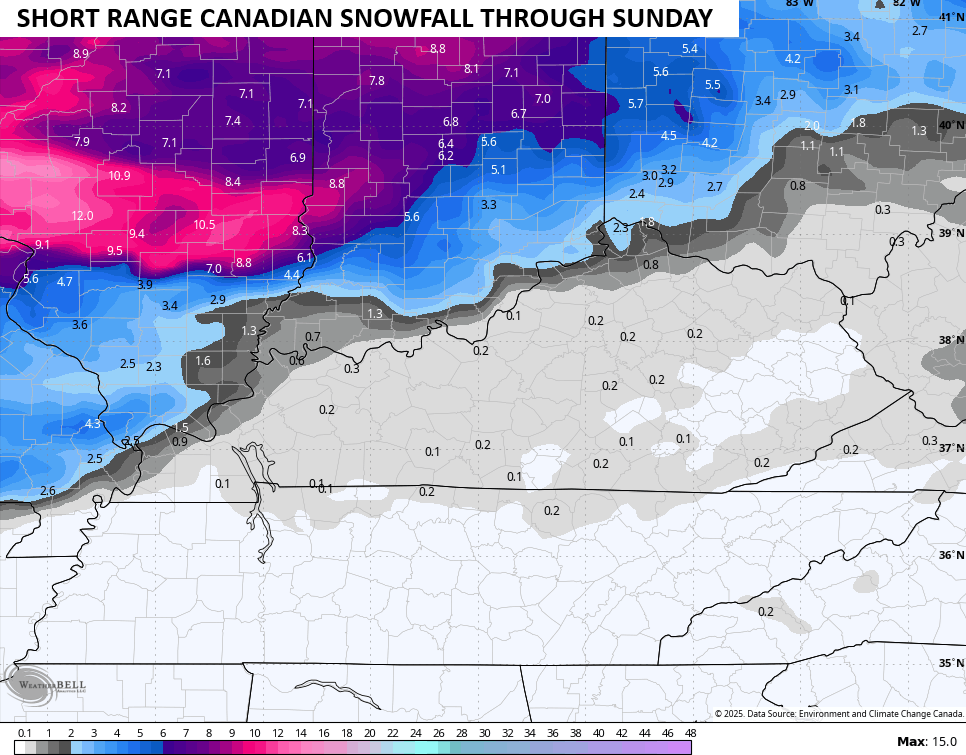 Here’s the snow map from that and it’s likely too snowy this far south…