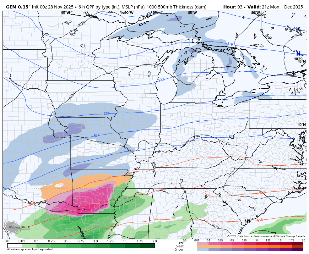 In terms of the forecast models, the GFS continues to be the coldest with the farthest south snow line at the start…
