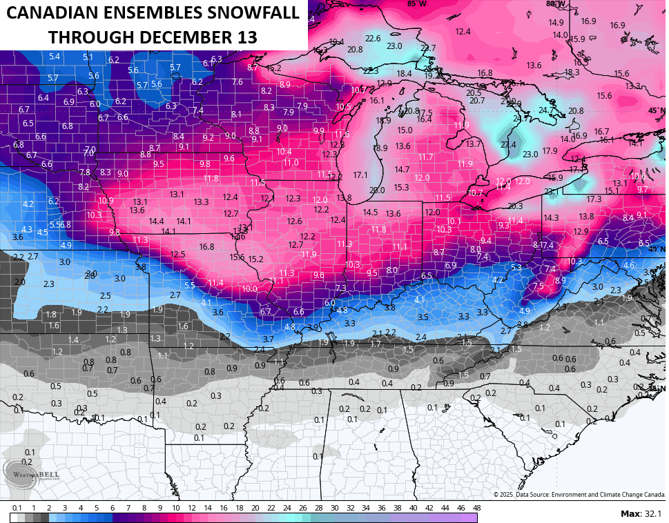 Another system of interest arrives late next week into the first weekend of December. This leads us into a series of arctic shots dropping into the country with the potential for a couple of severe arctic blasts before we even get to Christmas.