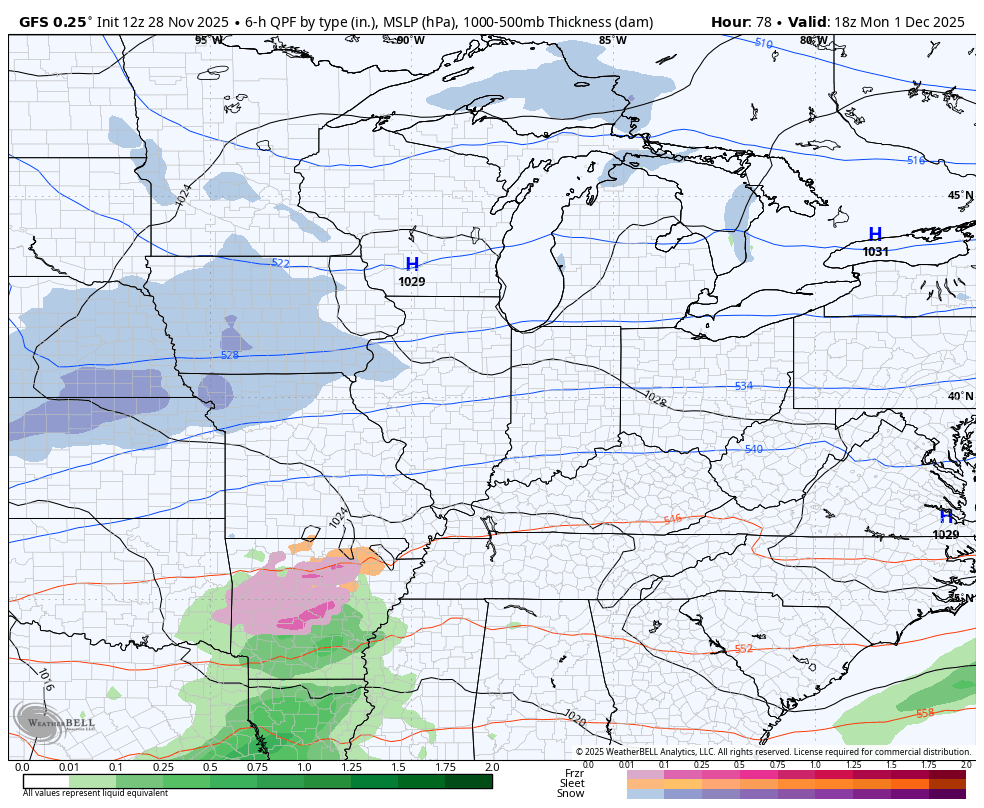 The bigger system arrives Monday night and Tuesday and may very well be our first Winter Storm Threat of the season. The models continue to give us a nice storm signal, but they are, as expected, really struggling with the details. All modes of precipitation may show up across Kentucky.