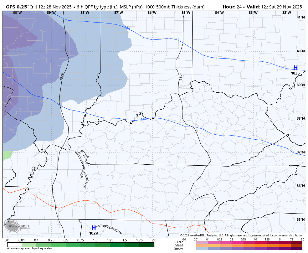 I have no substantial changes things play out with this system. Rain and some light snow move into western Kentucky early Saturday and spread east from there. Many areas may, at least, start as a few flakes before going over to rain, especially along and south of I-64. Northern Kentucky has the best chance to put a little snow on the ground during this time.