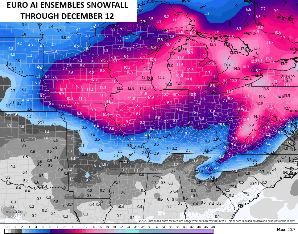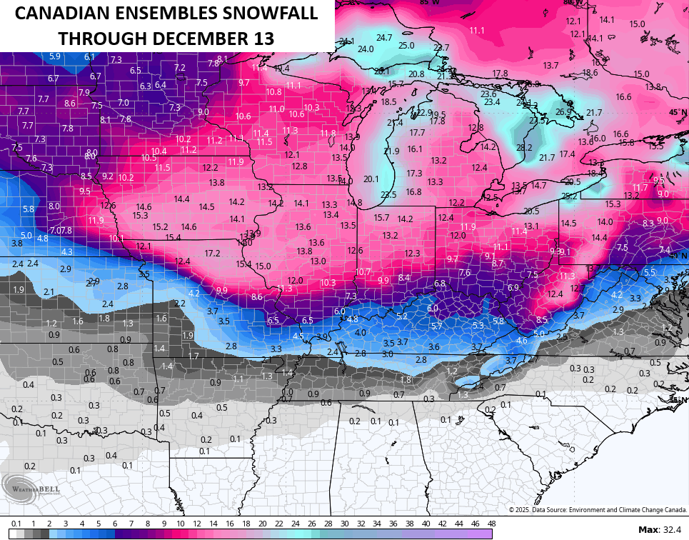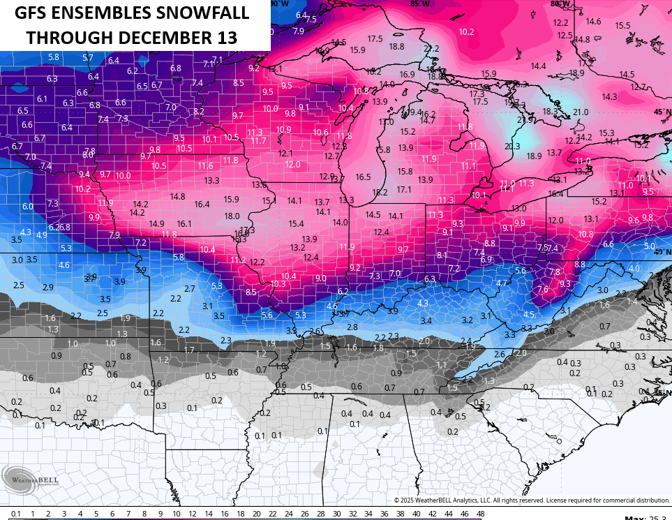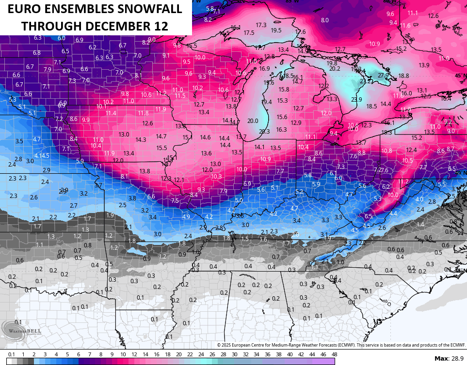 It’s interesting to note how all the Medium Range Ensembles are now seeing the potential for several snow systems over the next two weeks. Don’t focus on the amounts cause those aren’t even close to be accurate. They’re just giving you an idea that we have snow chances ahead…
