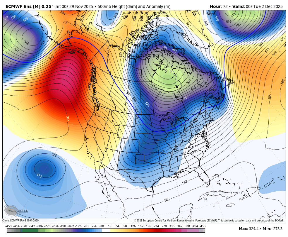 Y’all wanna see what a harsh winter pattern looks like for the eastern two-thirds of the country? The EURO Ensembles show deep trough after deep trough as far as the model can see into the middle of December…