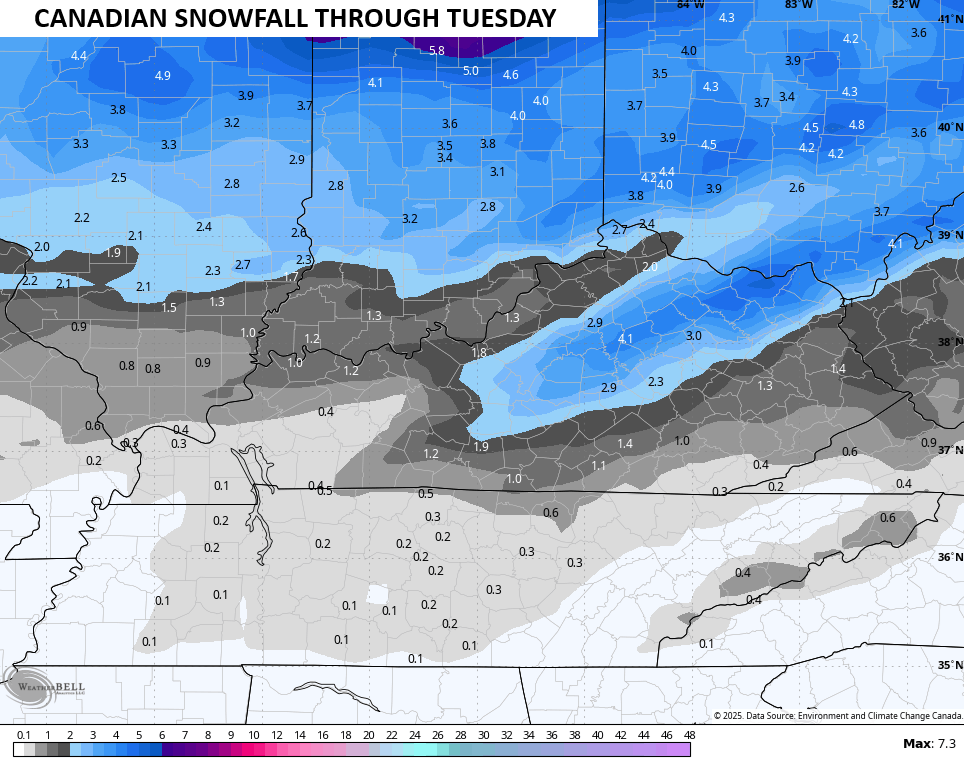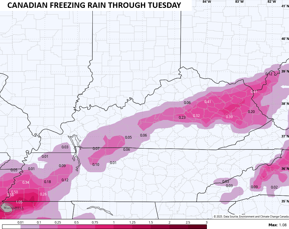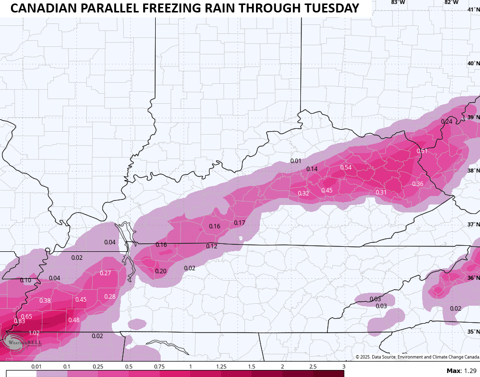 The Canadian Model is similar but I’m still not digging the tremendous amount of freezing rain it’s trying to spit out…