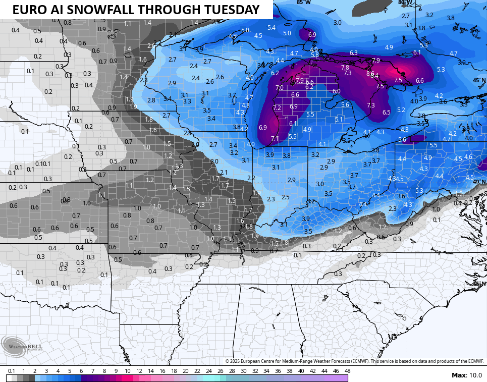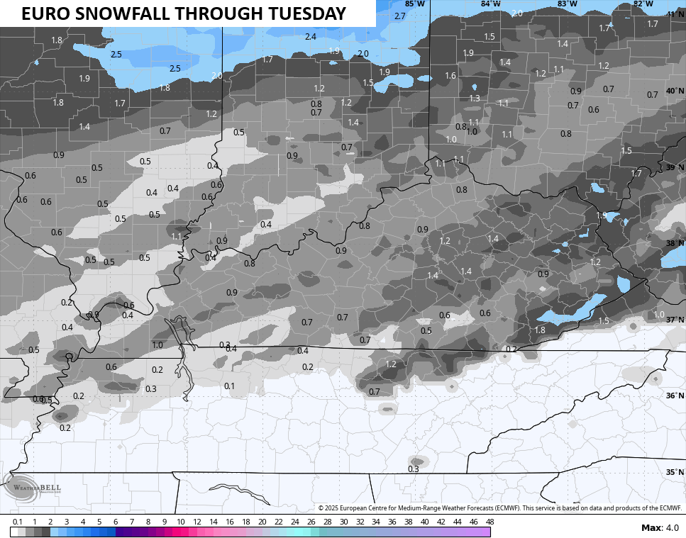 Here’s the snowfall map from that run of the EURO…