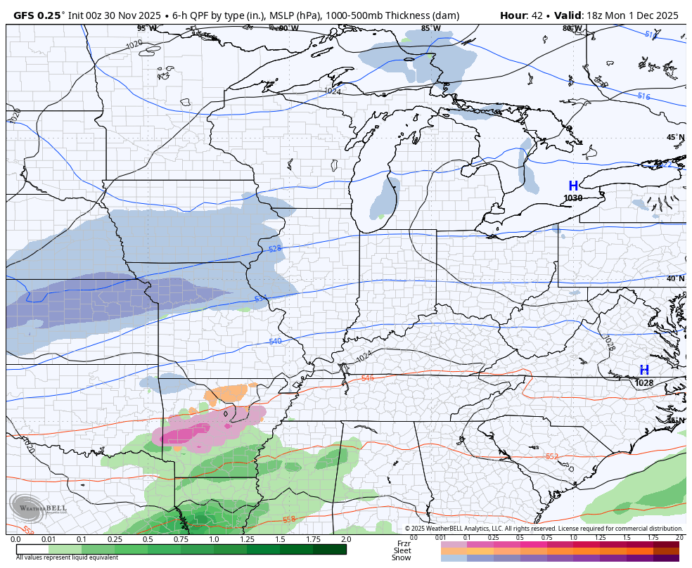 - This type of a setup means all modes of precipitation are likely to fall across the state. That’s something I’ve highlighted for days now.