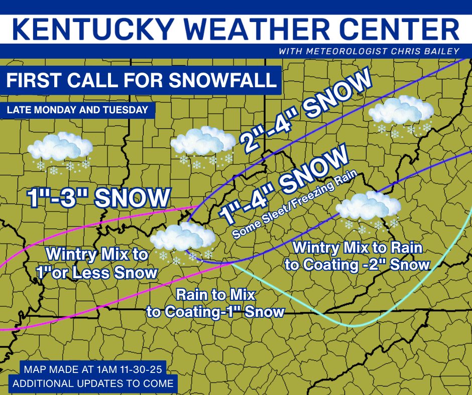 Good afternoon, everyone. Our Winte Storm THREAT continues for late Monday into Tuesday as our first winter storm of the season gets ready to impact our region. This storm kicks off what should become a harsh month of December for much of the country.