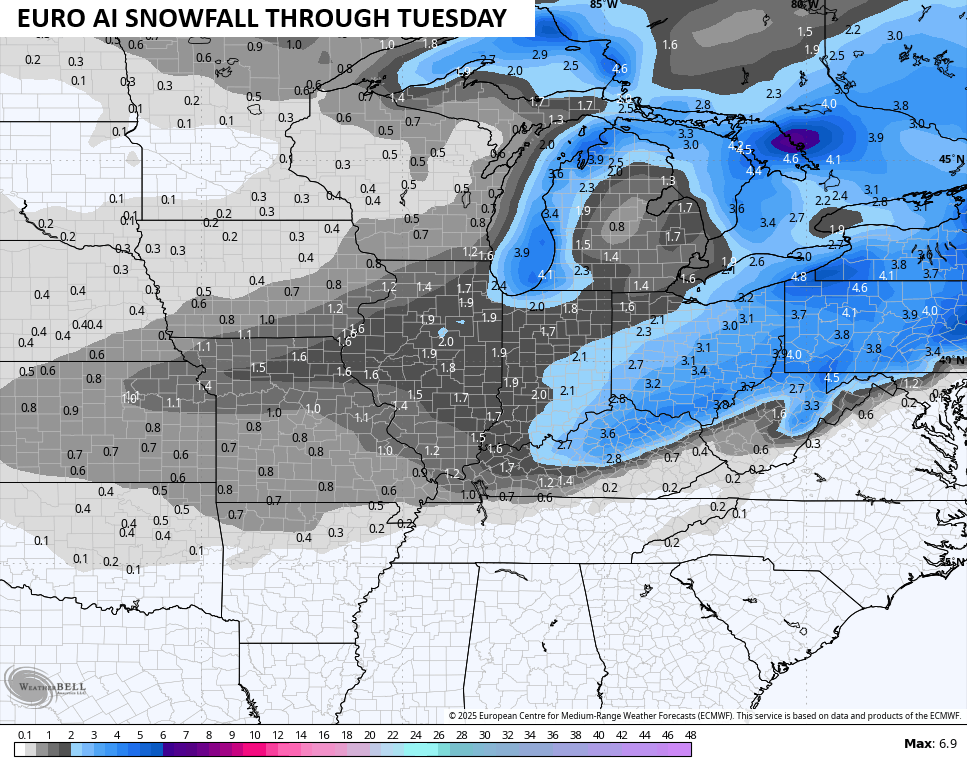 The snowfall forecasts from the models are pretty much in line with my forecast but have an area that’s a little beefier with snow totals and they have the heavier band a little farther southwest…
