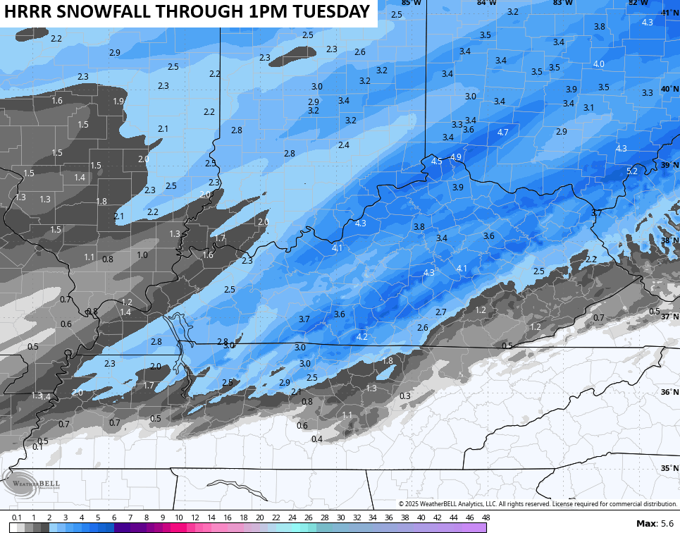 If you’re a snow lover, then you’re probably rooting for the HRRR to verify as it came in with the greatest snow shield of all the models.