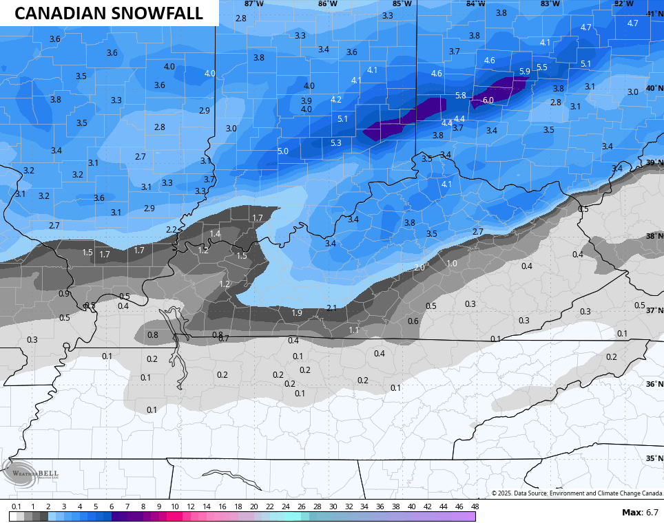 The Canadian continues to spit out some hefty freezing rain for some, but I still maintain that’s overblown…